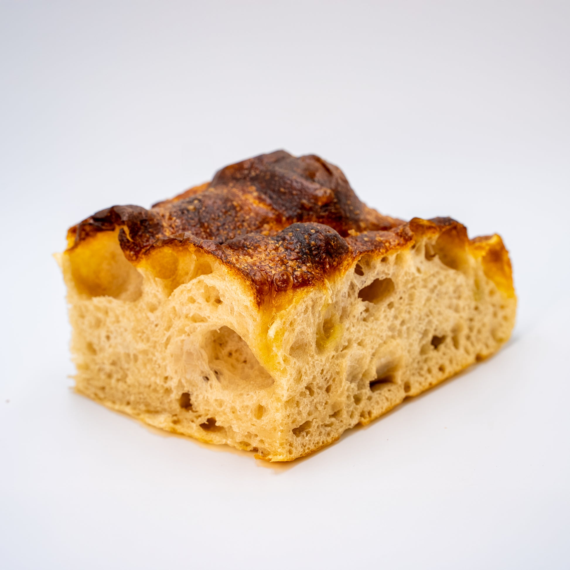 Vyrábíme z pšeničné mouky s vysokou hydratací těsta. Pro fermentaci používáme kvásek, který přispívá k výrazné chuti a prodlužuje trvanlivost. To vše s poctivým olivovým olejem a špetkou soli nahoře.
